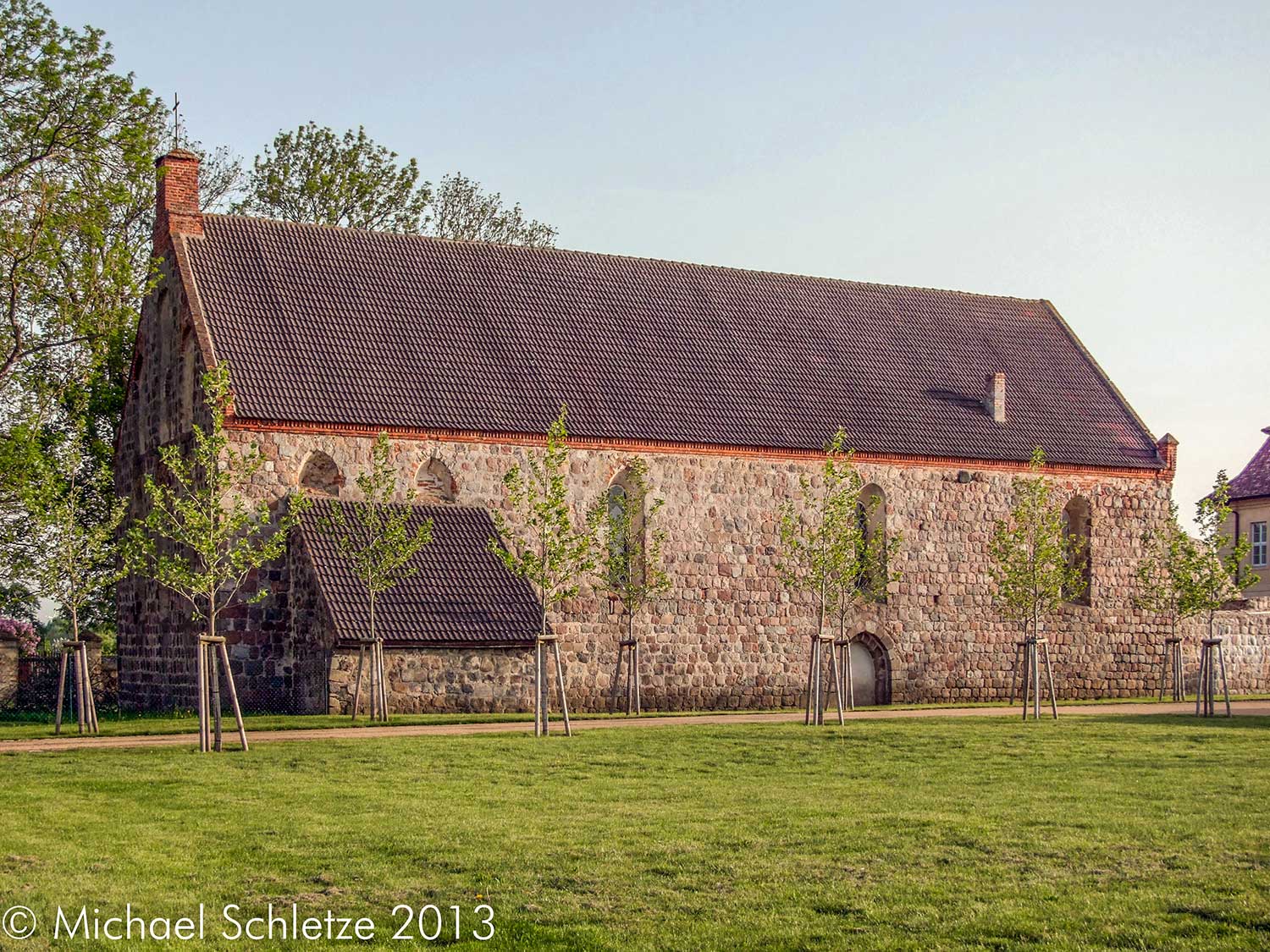 Auf der Südseite verbirgt die erwähnte Eingangshalle ein zweistufige Südportal mit einer eisenbeschlagenen Tür aus dem 15. Jahrhundert. Der Abschluss der östlich zu findenden Priesterpforte wurde ebenso neuzeitlich in Backstein ausgebessert bzw. erneuert wie das Traufgesims, die Abschlüsse einiger Fenster und die der Blenden des Ostgiebels. Auf der Nordseite trifft man auf ein große zugesetztes Spitzbogenportal mit Begleitbogen. Die Fenster der Längsseiten wie auch die der Dreifenstergruppe scheinen mehr oder weniger ihre ursprüngliche Form bewahrt zu haben.
