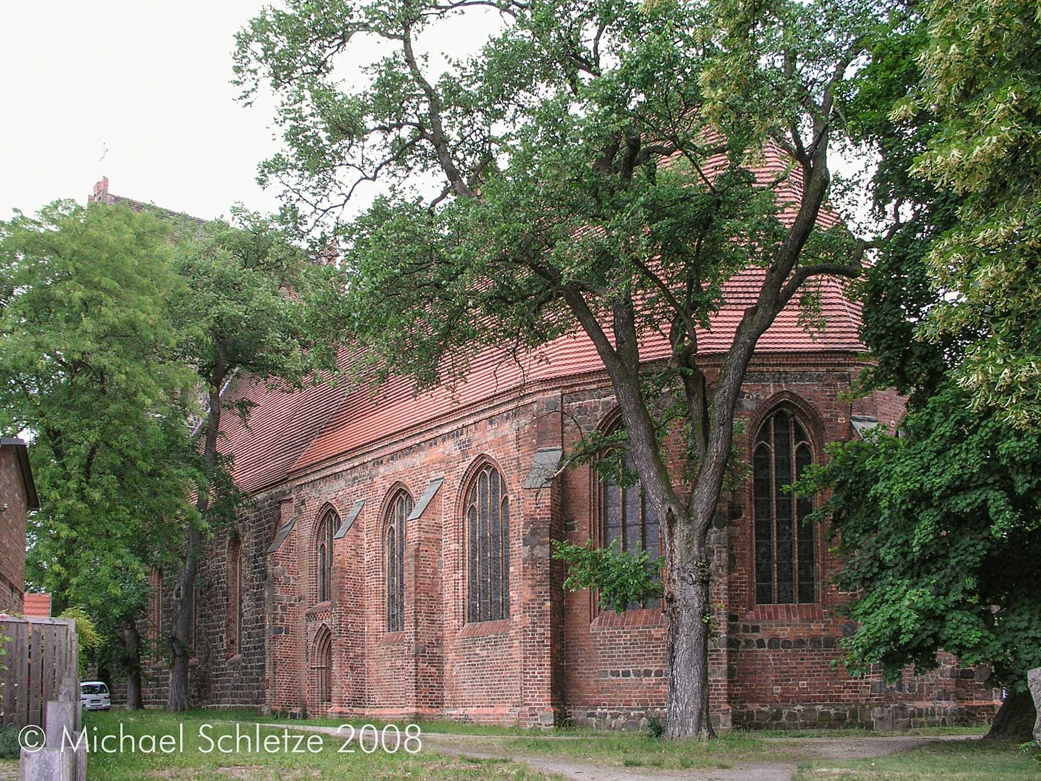 In einer landesweiten Zeit spätmittelalterlicher Prosperität folgte dann ein großzügiger Umbau im 15. und zu Beginn des 16. Jahrhunderts. Der Chor wurde erweitert und bekam seinen polygonalen Abschluss, wie er für Stadtkirchen dieser Zeit allgemein üblich war. Im Norden fügte man eine der Jungfrau Maria geweihte Kapelle an. Nun verwandte man den reichlich vorhandenen Backstein als wesentlich flexibleres Material. Davon zeugen die jetzt entstehenden Fenster und Portale mit ihren gestuften Formsteingewänden. Auch der Turm wurde um zwei Stockwerke erhöht. Damals entstanden auch die 1978 freigelegten Malereien im Innenraum. Hinweise zum Zeitraum dieser Umbauten liefert uns einmal eine schriftliche Quelle aus dem Jahr 1470, in welcher die Marienkapelle als neu bezeichnet wird und die Inschrift auf der Rückseite des im Innern Schiff und Chor verbindenden Triumphbogens, die uns für 1520 oder 26 – manche Zahlen lassen sich nicht mehr mit Sicherheit deuten – die Fertigstellung durch einen Baumeister Höppner vermeldet.